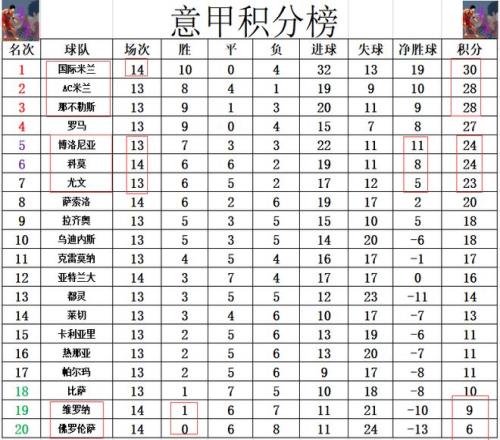 积分榜方面,国米先赛大胜黑马后夺取连胜,暂时超过AC米兰,那不勒斯2分重回榜首。科莫惨败后,净胜球比博洛尼亚少了3个,跌到第6的位置。维罗纳击败亚特兰大拿到赛季首胜,但还不足以让他们逃出降级区,现在就只剩下佛罗伦萨本赛季还没有赢过球。