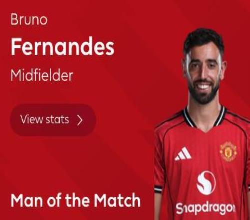 最终经过英超官网球迷投票,布鲁诺-费尔南德斯当选全场最佳球员。