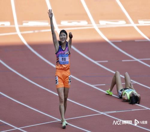 女子400米T47级决赛,当天恰好过生日的河南选手李露庆祝夺冠。