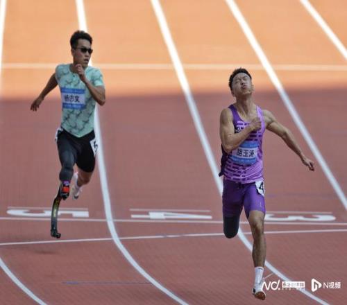男子100米T64级决赛。