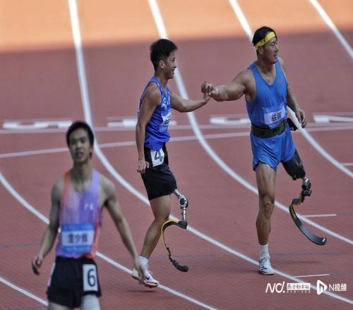 男子100米T63级决赛。